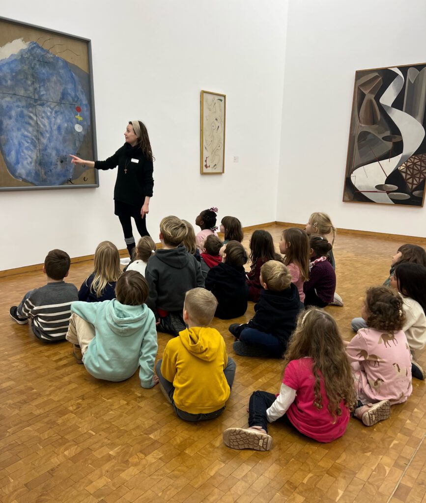 November 2025 – Heute haben wir unseren ersten richtigen Ausflug gemacht. Wir sind mit der S Bahn zum Museum Ludwig gefahren und hatten dort einen tollen Workshop. Wir haben verschiedene Künstler und ihre Kunstwerke kennengelernt. Danach haben wir selbst gemalt wie Paul Klee. Es hat riesen Spaß gemacht.