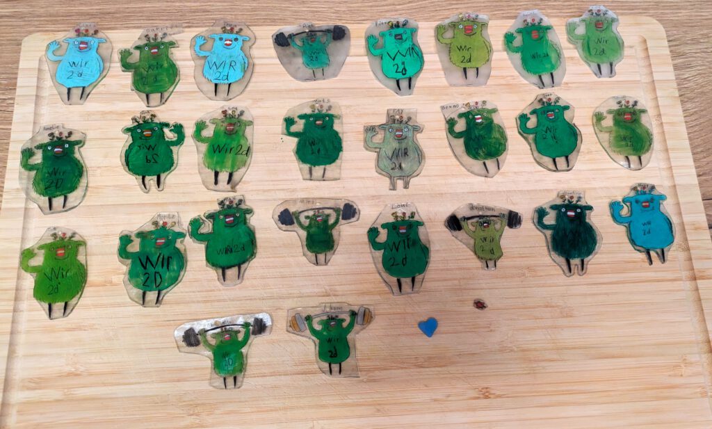 September 2025 – Mit dem Buch “Das kleine WIR” haben wir die Klassengemeinschaft gestärkt und einen Schlüsselanhänger aus Schrumpffolie gebastelt.