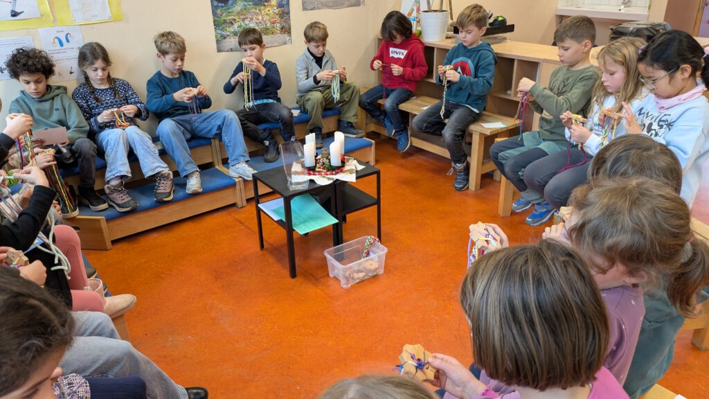 Dezember 2025 – In der Weihnachtszeit haben die Frösche verschiedene Handarbeiten gemacht. Wir haben einen Strohhalmstern gebastelt und einen Knüpfstern kennengelernt. Das hat viel Freude bereitet und wir möchten einen Tassenuntersetzer aus dem Knüpfband bald herstellen. Die letzte Teestunde war großartig, es ist auch nichts umgekippt und leckere Plätzchen wurden mitgebracht. Die nächste Teestunde kann dann bald mit Tassenuntersetzer kommen.