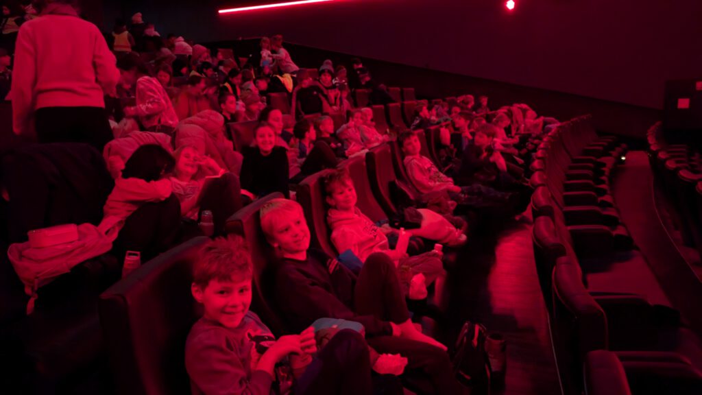 Januar 2026 – Die Frösche haben einen spannenden Ausflug in das Kino gemacht. Während der Schulkinowochen konnten sie vormittags den Film „Checker Tobi und das Geheimnis unseres Planeten“ schauen. Der Film war super, Popcorn und Weingummi gab es sogar auch!