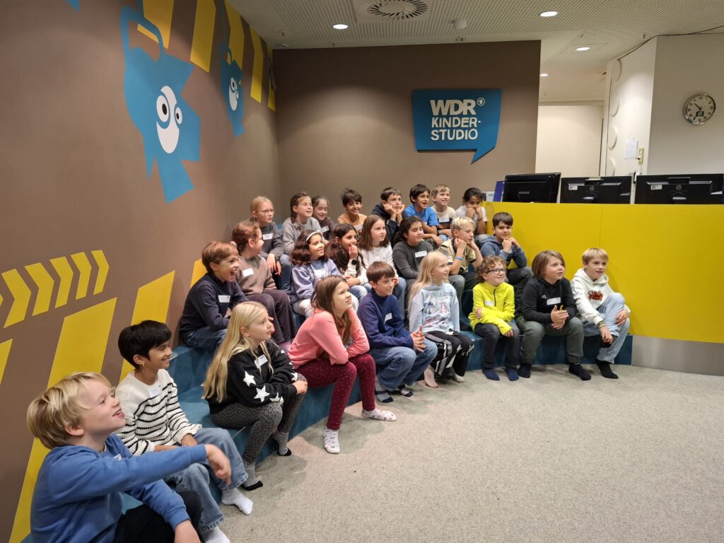 Oktober 2025 – Am letzten Schultag vor den Herbstferien besuchte die Igelklasse das WDR-Kinderstudio . Dort nahmen die Kinder der 4a eine kurze Nachrichtensendung auf, bei der natürlich neben den Moderatorenaufgaben auch die Regie, die Technik und die Maske zu besetzen waren. Allen hat es super viel Spaß gemacht.